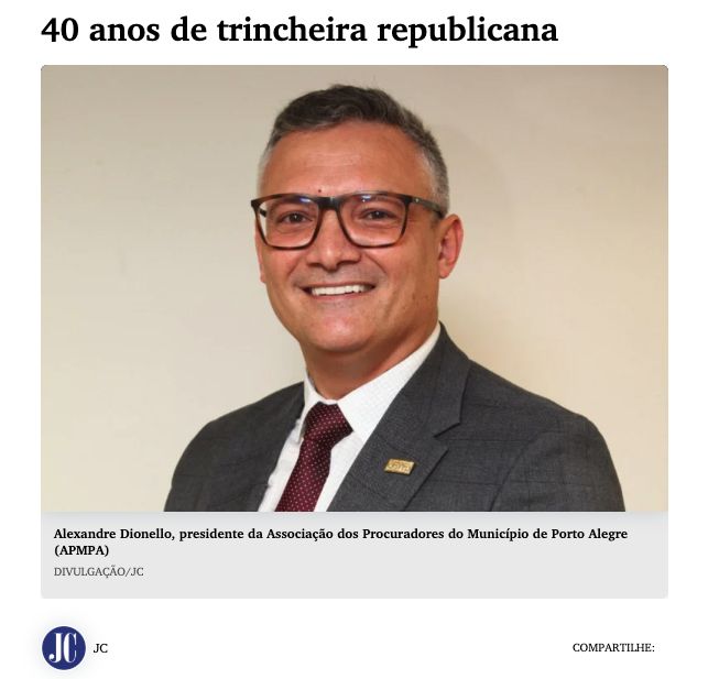 O Jornal do Comércio publicou nesta terça-feira, 3 de fevereiro, artigo de opinião assinado pelo Presidente da Associação dos Procuradores do Município de Porto Alegre (APMPA).